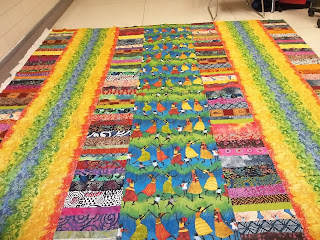 I love making this string type of quilt, such freedom! Then it had to have a border of zebras, oh, and a lime green border on that.